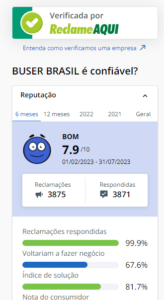 Em meados de 2023 a nota da Buser no Reclame aqui é 7,9 (de um total de 10 pontos), o que é avaliado como “bom”.