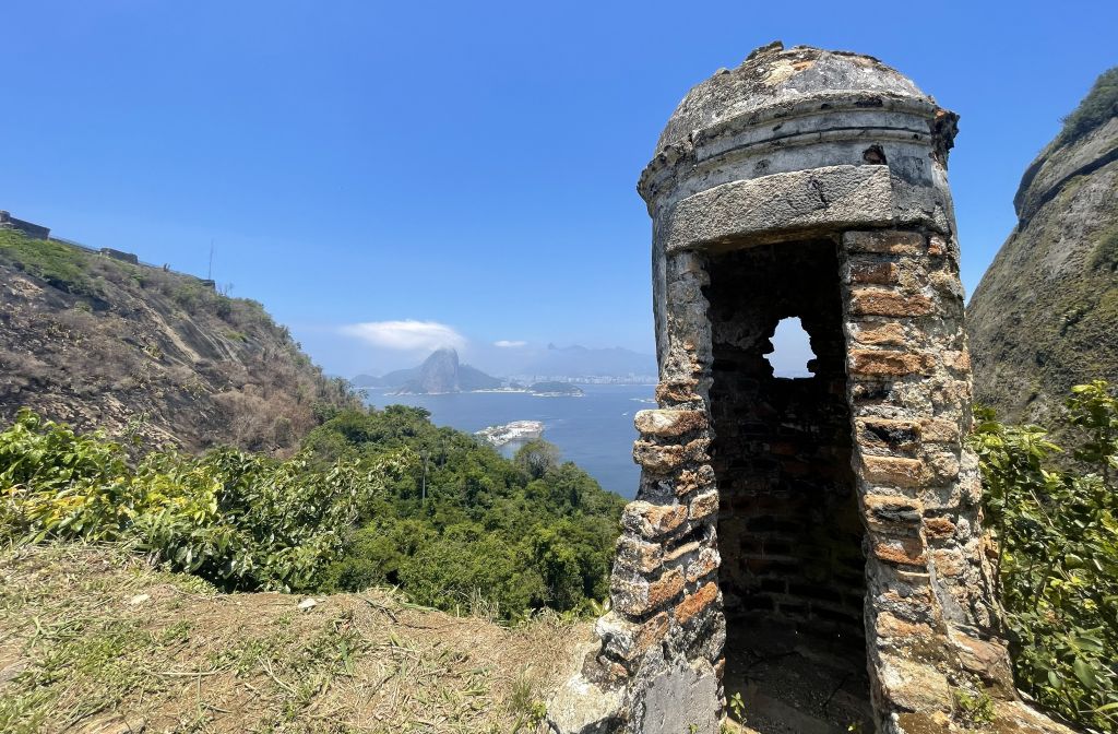 A última parte da visita fica no alto do Forte do Pico, a 227 metros acima do nível do mar. Ali estão alguns itens do acervo e antigos canhões que ajudam a contar a história do lugar. Por lá a vista é simplesmente arrebatadora. Do topo, dá para enxergar o Pão de Açúcar, o Corcovado e outros pontos turísticos emblemáticos, todos sem qualquer obstáculo no caminho.